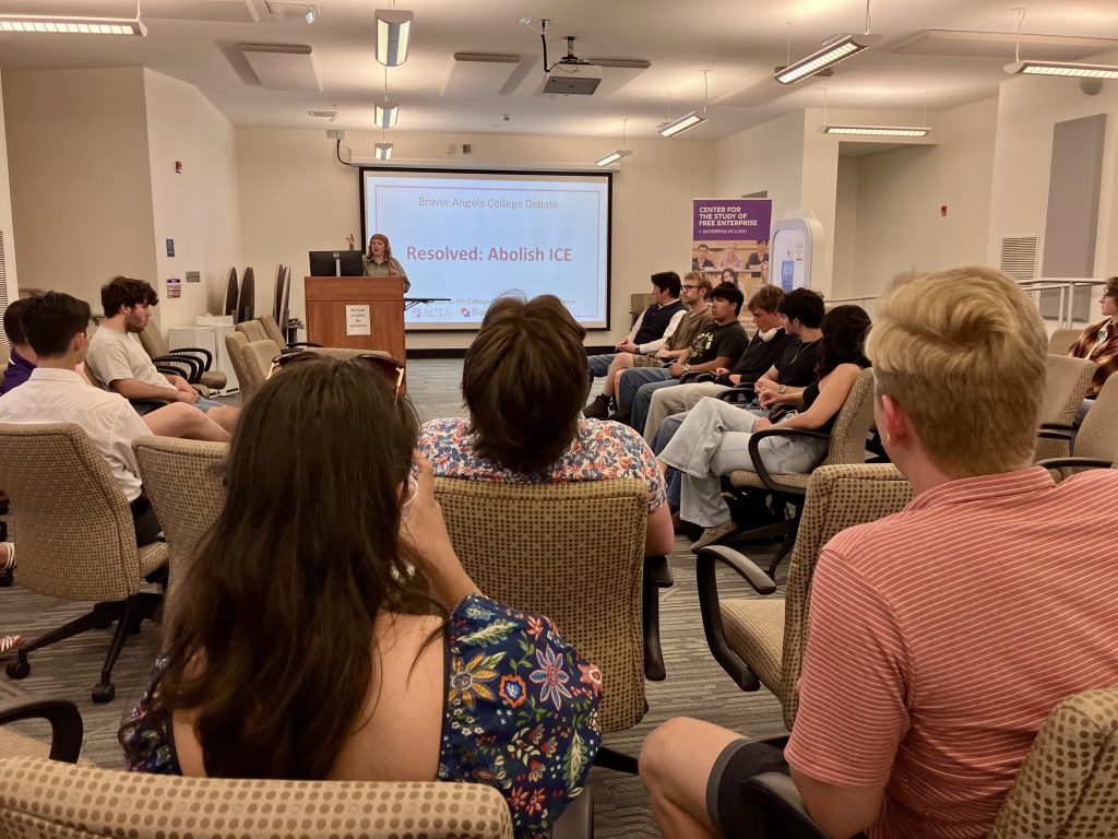 On March 23, students and community members gathered for the CSFE’s fourth campus-wide debate/discussion of the year to debate whether the United States Immigration and Customs Enforcement Agency, or ICE, should be abolished. Participants who were against the abolition of ICE noted that it plays an important role in vetting those who want to enter the country. ICE is a line of protection from those who want to harm those who are legally in the country. Some noted that ICE enforces customs rules and regulations.