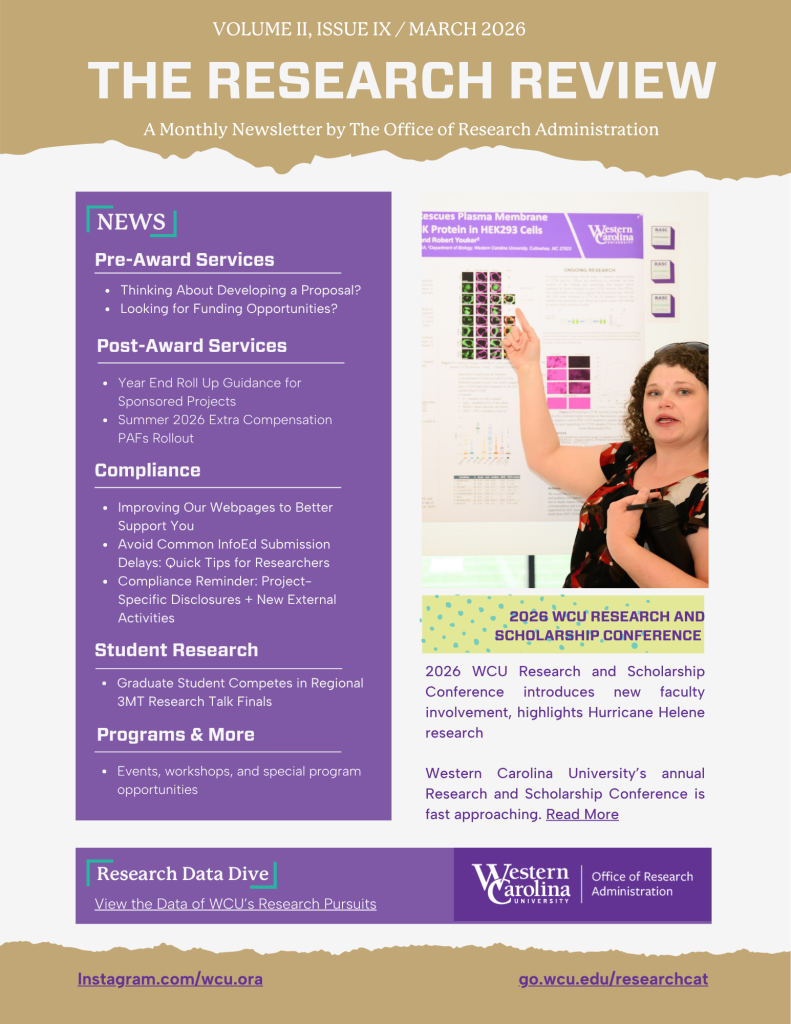 The day concludes with a keynote address from a panel of WCU faculty, poster exhibits, and a celebratory reception sponsored by the Office of the Provost.