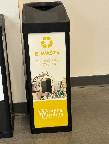 New recycling bins for technology products are now available in several buildings on campus. Look for the opportunity to discard unwanted or broken technology products in these yellow tagged containers!